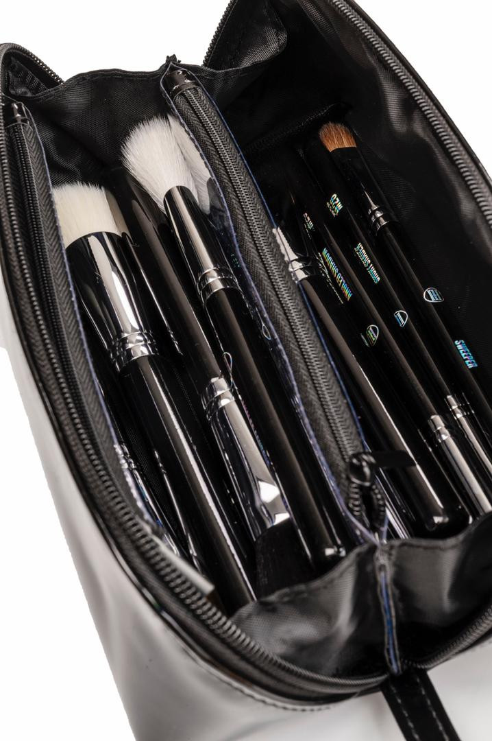 یک کیف آرایشی مشکی و زیبا دارد که موجب می شود این ست سبک و قابل حمل باشد.
